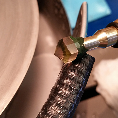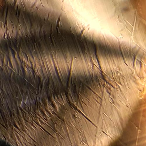 Once the pavilion was done I started to cut the crown. As I started to polish it I could see small iridescent reflections coming from inside the stone. I was hoping that these inclusions wouldn’t be visible to the naked eye and luckily they weren’t. However, I manged to get the stone under the microscope and I took this photo of some beautiful liquid filled tubes inside the stone that follow the crystal structure of Beryl. These were creating the reflections I could see.