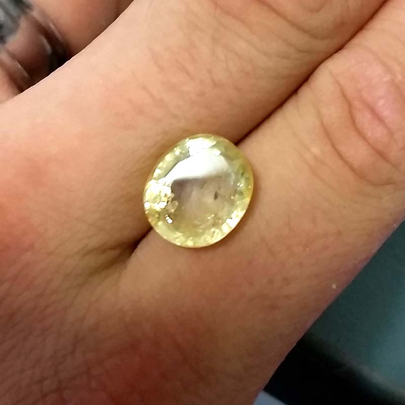 These are tests that can be done without any specialist equipment In most cases all that is needed is your eyes and sometimes maybe a loupe. So this stone was poorly cut, nothing surprising there. It had a strange colour to it, something that I would not expect from a yellow Sapphire. It was obvious that by rotating the stone, the colour was mostly coming from the bottom of the stone and being reflected around. Usually the colour comes from inside the stone and rotating it does not change the colour of the stone.