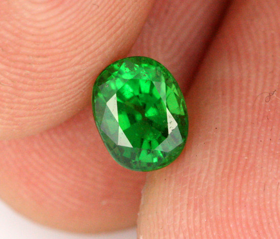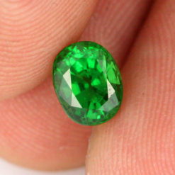 This is a varity of green garnet called Tsavorite. It has a very unique and bright green colour that is only found in this type of Garnet. The colour can rival the green of Emerald and is a great alternative.