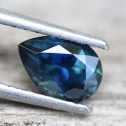 This Sapphire comes from the fields of Anakie in northern Queensland, Australia. The Sapphires are high in iron content and so they show dark colors with visible banding in many cases.
