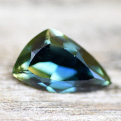 This Sapphire comes from the fields of Anakie in northern Queensland, Australia. The Sapphires are high in iron content and so they show dark colors with visible banding in many cases.